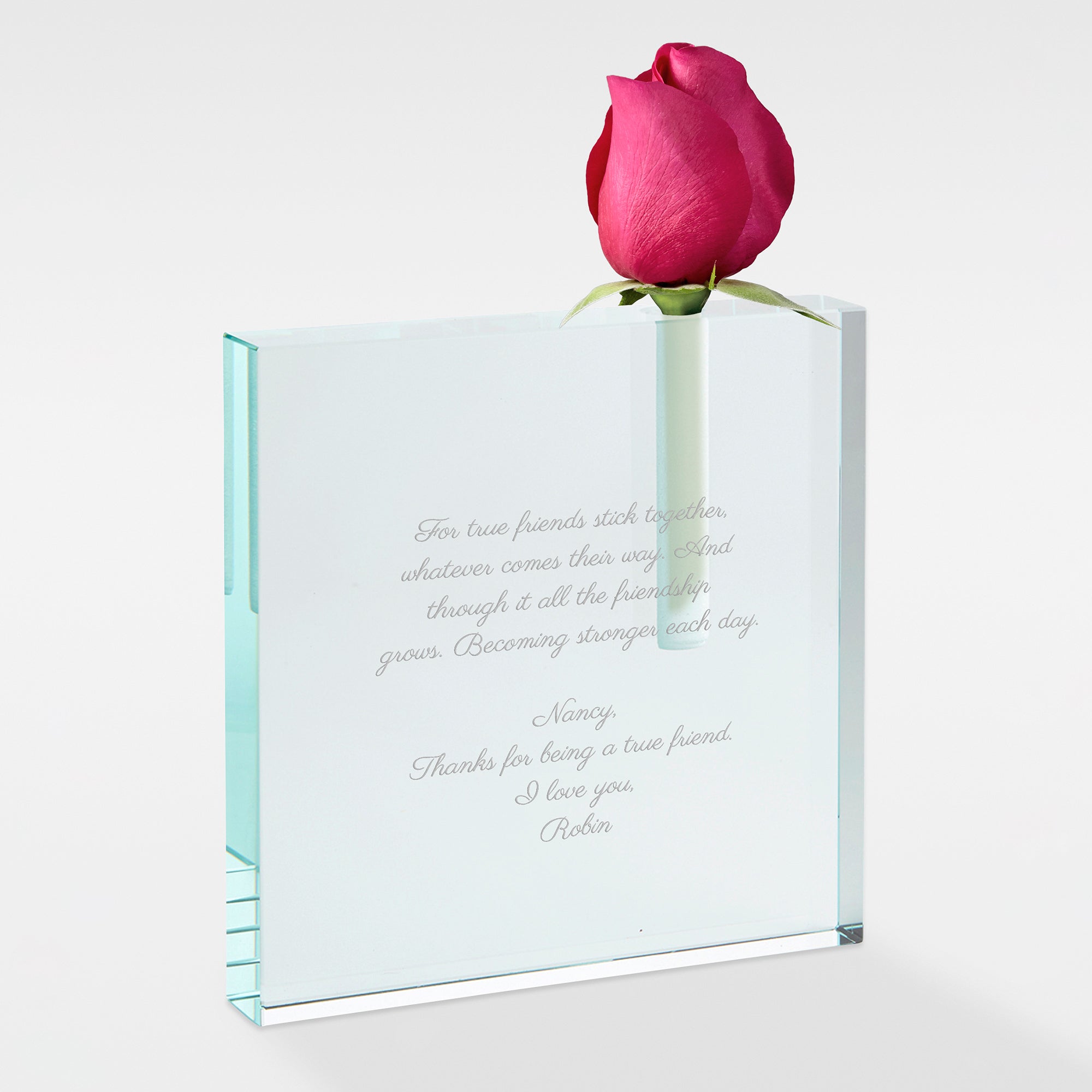 Express your sentiments with the Engraved Message Glass Bud Vase for Her.