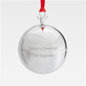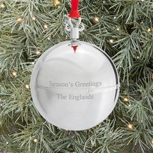 Our Silver Musical Ball Ornament winds up to play a cheerful tune! It can be personalized with a message they'll love to see on their tree for years to come. This stunning metal ornament makes a great family, hostess, or office holiday gift!