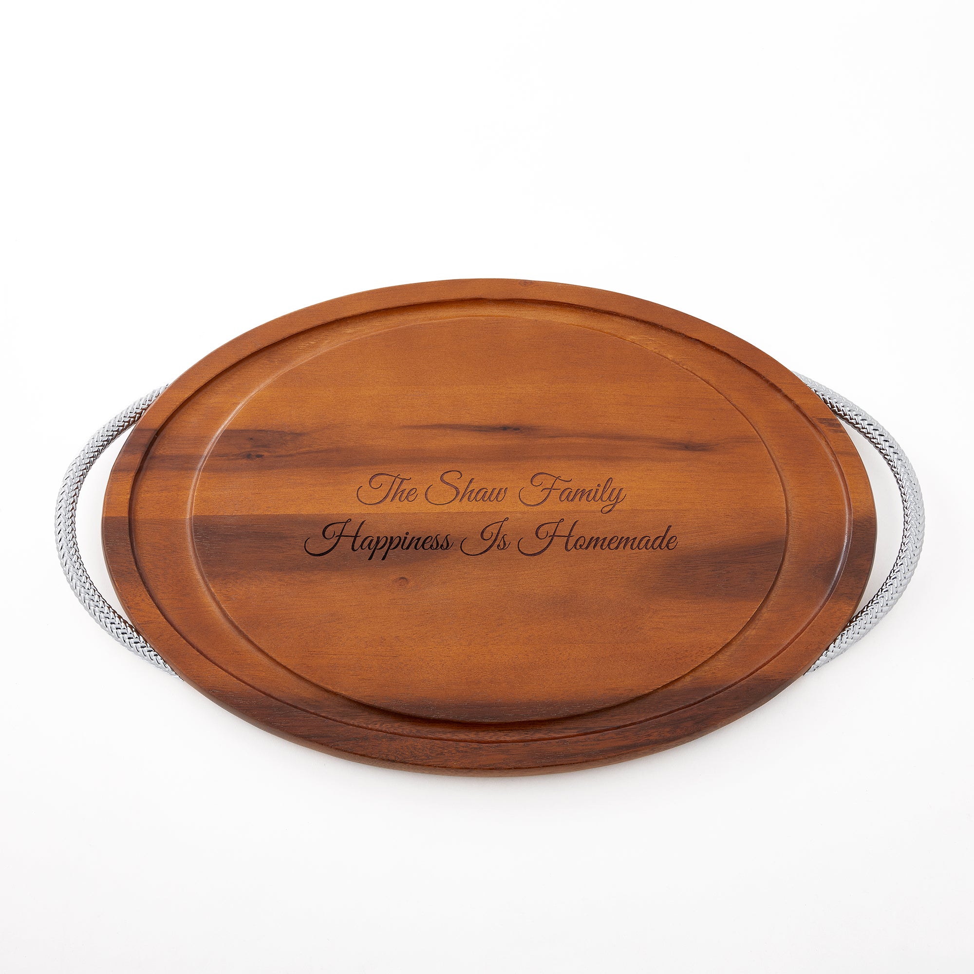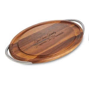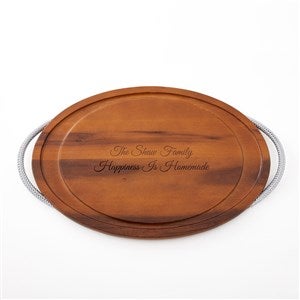 Nambé's Braid Carving Board will beautifully present any meal for any occasion! The braided handles add a unique touch that they will be sure to love. Engrave the board with a name, date, or short message.
