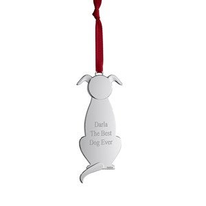 - Silver-plated dog ornament with gold heart on front and your personalization on back side