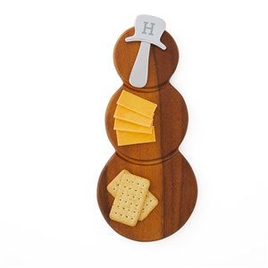 Engraved Nambé Snowman Cheese Board with Top Hat Spreader