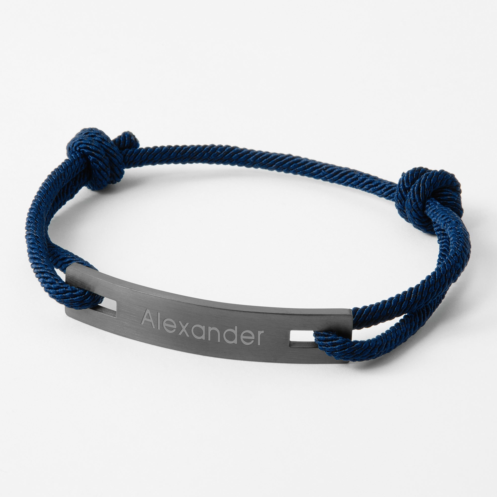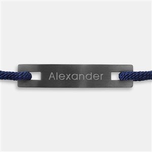 • Adjustable ID bracelet with a gunmetal ID pendant and navy corded bracelet