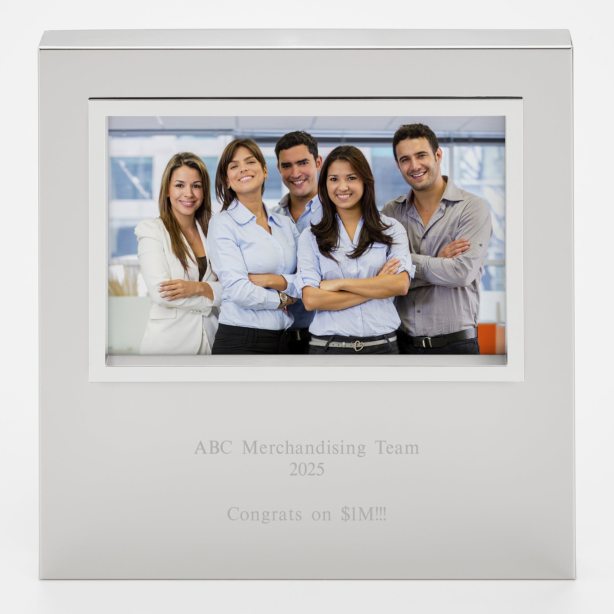 Our Uptown Picture Frames offer an open space for your personal message. This 4x6" version in silver finish is no exception! Display your wedding, family, or portrait with pride and a personal message below the photograph or to the right side if the vertical/portrait orientation is preferred! The Uptown frame is a wonderful way to give a loved one a message with a photo reminding them of the moment.