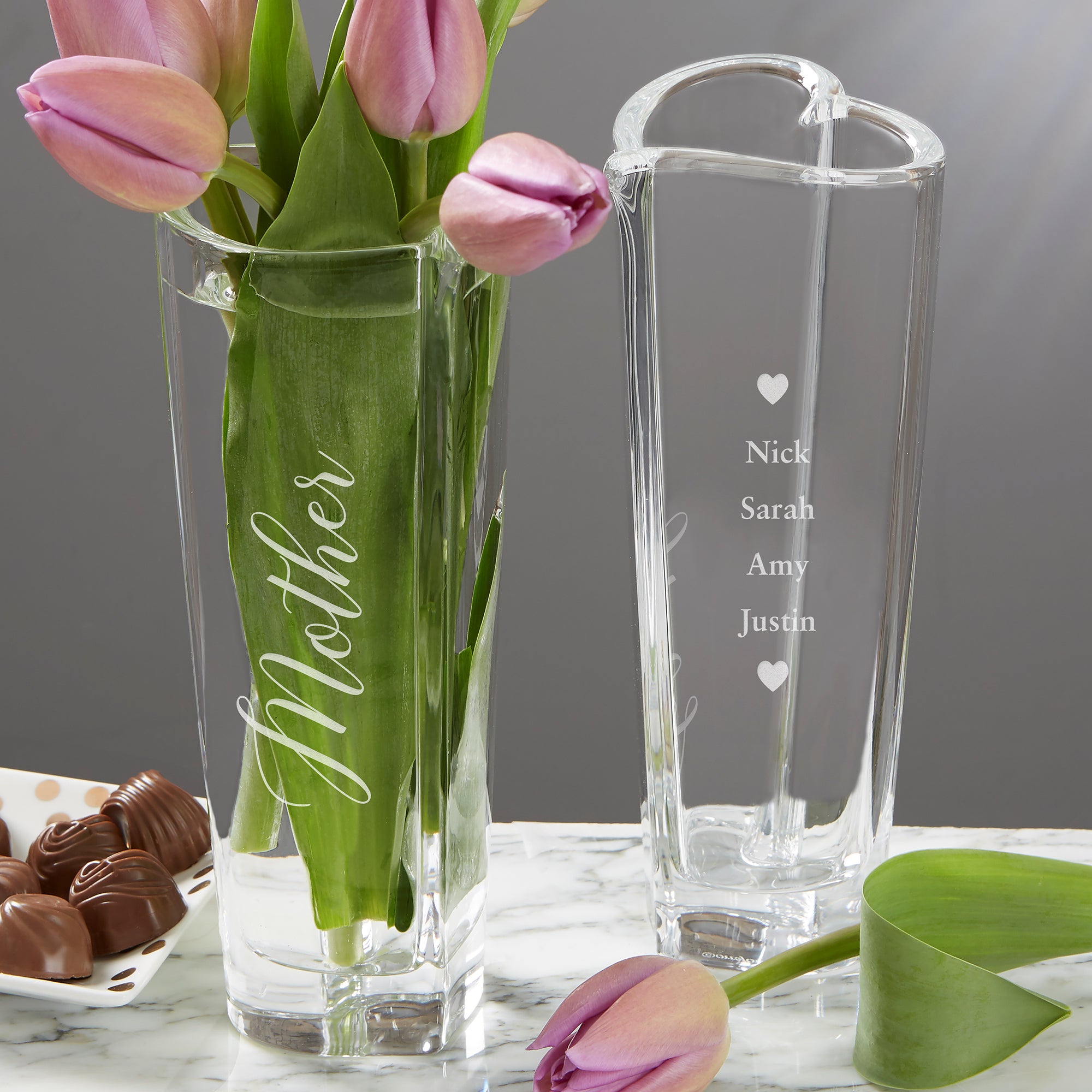 - Personalize with any title etched vertically on one side of the vase along with up to 8 names on the other side