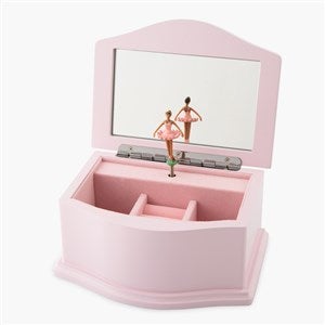 • Pink jewelry box that features a ballerina inside that twirls to the song "Swan Lake" when wound