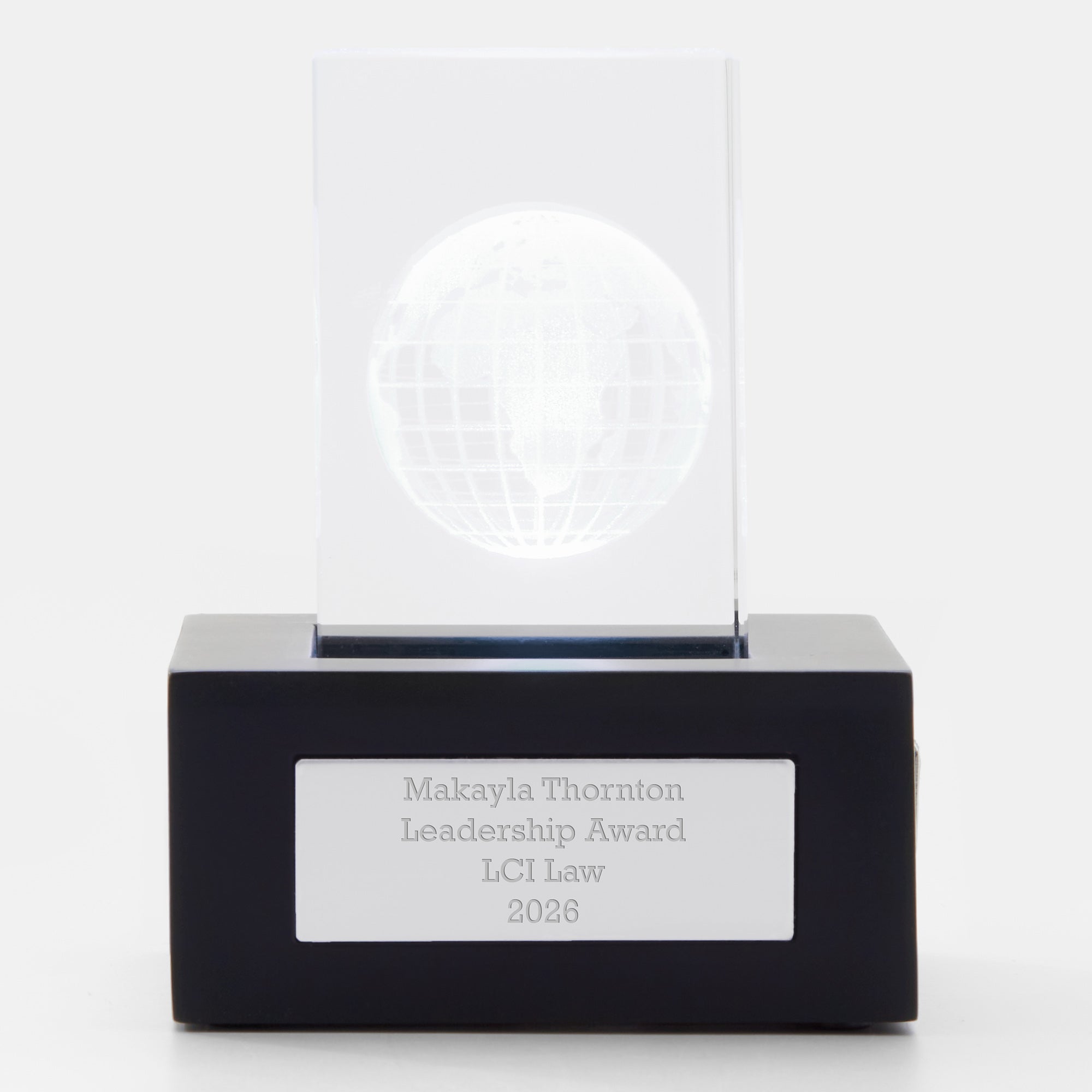 Show your appreciation of their hard work through gifting them our Engraved Planet Earth Light Up Globe! It features a rectangular shaped glass, that lights up, and a sturdy base with a plate for personalization. Express your gratitude through having their name, date, achievement, or a personal message engraved.
