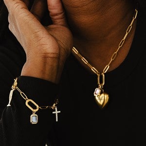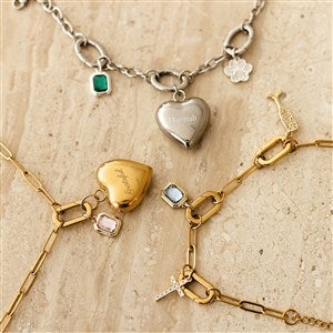 Part of our Build-Your-Own-Charm Jewelry Collection, the Engraved Puffy Heart Charms can be added to any of our necklaces or bracelets! This charm comes with an O-ring that can slide onto any of our charm clasps. We'll engrave it with a name, date, or initial of your choice!