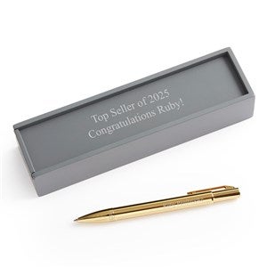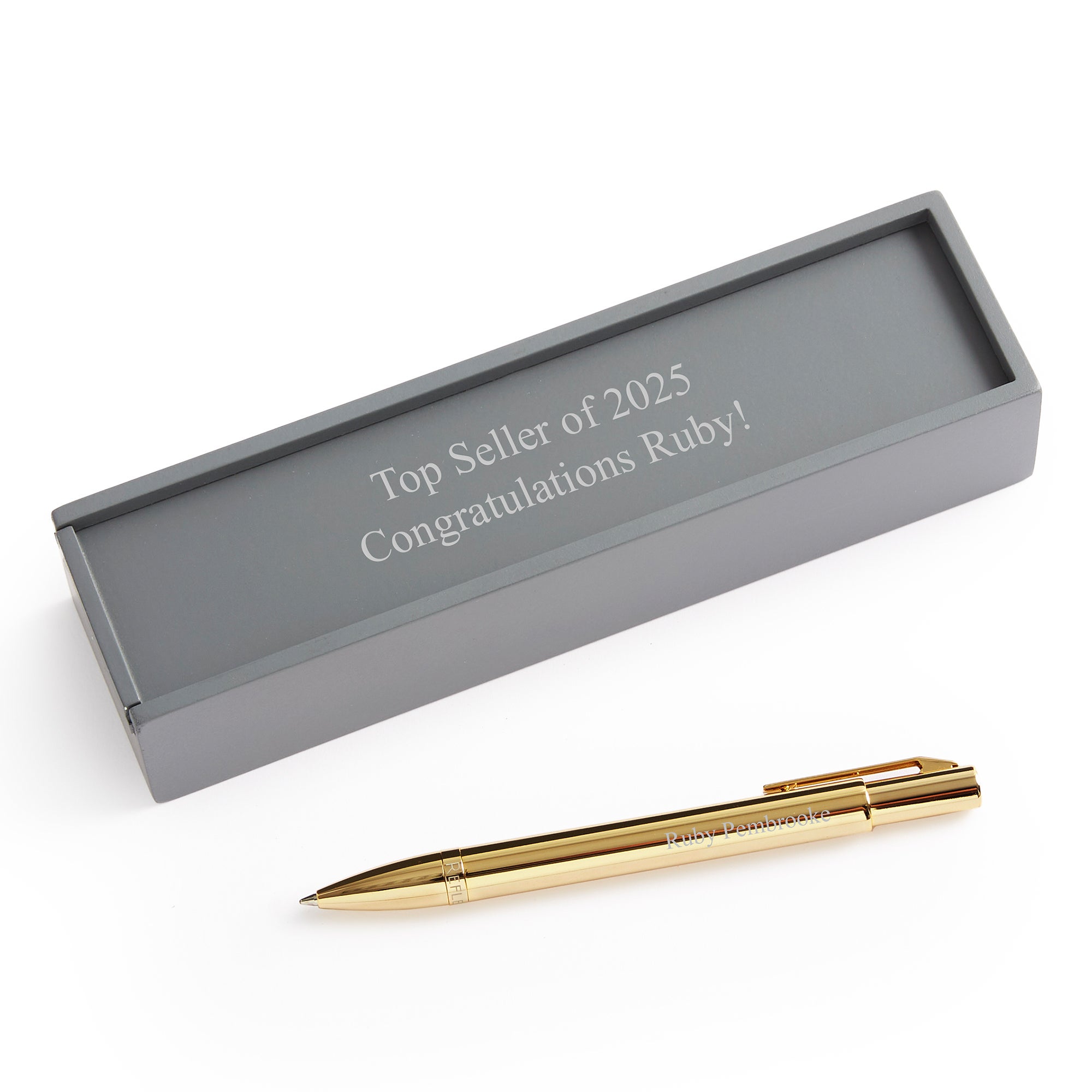 This Gold Ballpoint Pen from Reflections is exclusively designed by Things Remembered. The ballpoint pen comes nicely packaged inside of a grey wooden box that can also be engraved with a note of your choice. Try engraving their name on the pen and a note about the occasion on the keepsake box!