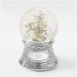 Our Engraved Religious Cherub Snow Globe will make anyone in your life smile! This globe features an angel cherub holding a heart that says "made with love" and has room to commemorate their name or a personal note on the base.