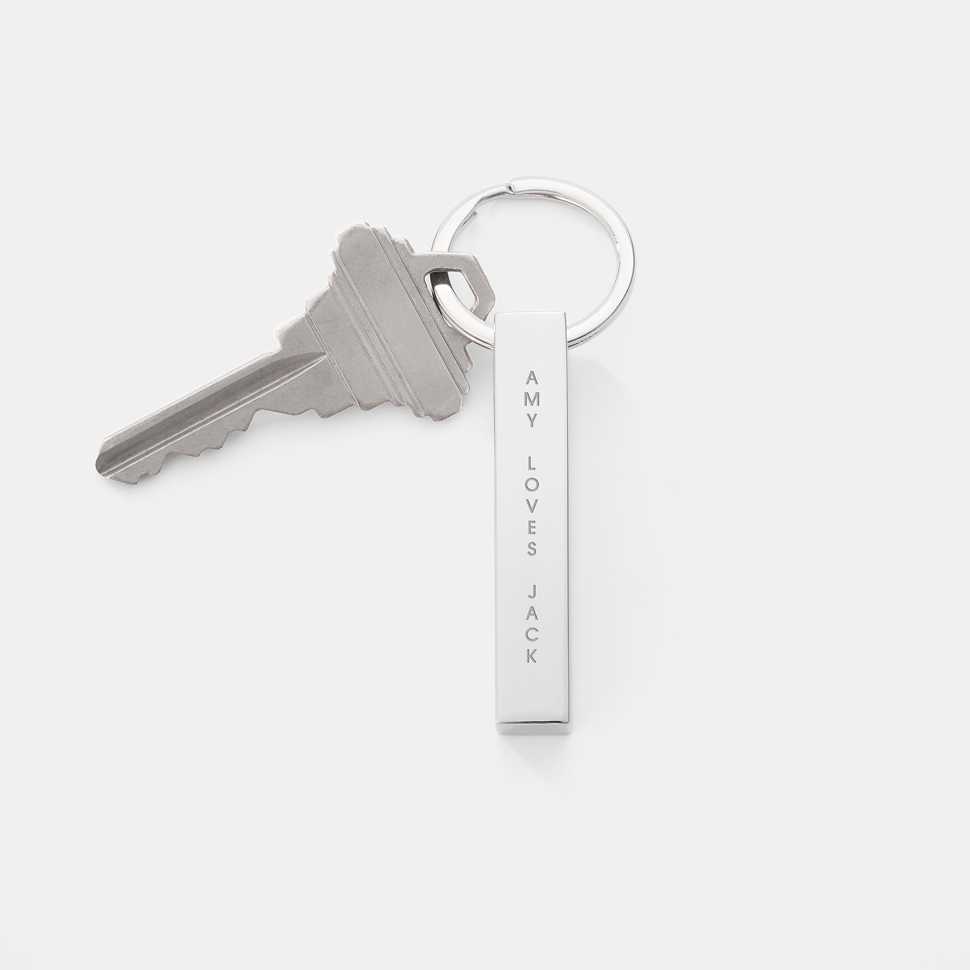 Our Vertical Bar Keychain is a fun way to to engrave a personal note for them in a place they'll see it daily! We'll engrave the front and back sides with a word, phrase, date or whatever meaningful combination they'd like.