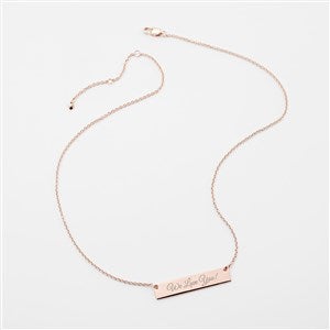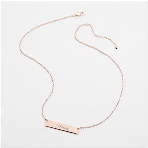 The Rose Gold Bar necklace will quickly become a staple piece of their jewelry collection! The bar pendant has ample room for your personalization! You can engrave the front and back their name, an important date, or initials. They'll love to wear this necklace on its own or layered with others! We also offer this necklace in gold and silver. Makes a great gift for birthdays, Christmas or just because!