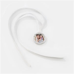 Have loved ones close on the special day with the Engraved Round Bouquet Photo Charm. The front can hold a small photograph of a loved one, and the back can be engraved with any name, date, or short message.