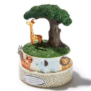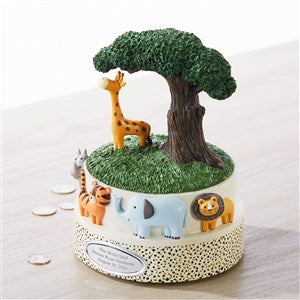 Our Safari Animals Coin Bank will make a joyful addition to any child's room. This sweet friend will hold their coins and a message to them. Many of our customers engrave a new baby's name, birth date, height, and weight on it for them to have and remember as they grow into bigger kids.