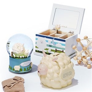 Check out other items in our Can't Sheep Collection including a snow globe, treasure box, quilted play mat, and quilted blanket.