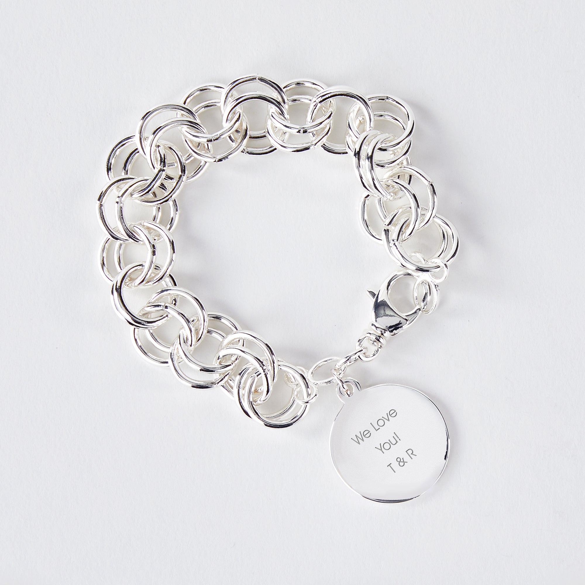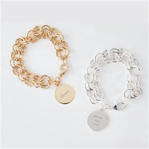 Our Silver Chunky Link Bracelet is a fun addition to any jewelry collection. The double-linked style in on-trend worn alone or stacked with additional bracelets! We'll engrave the round pendant with a name, date, or personalized message.