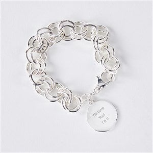 - Silver chunky double link bracelet with round pendant ready for your engraving