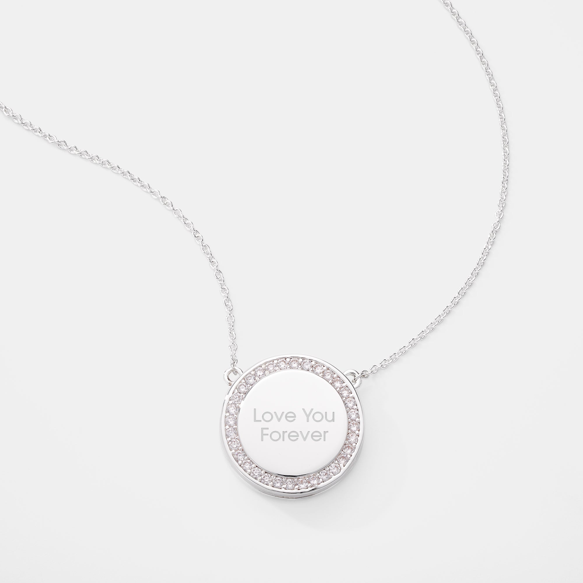 • Silver plate engravable locket necklace with cz stones
