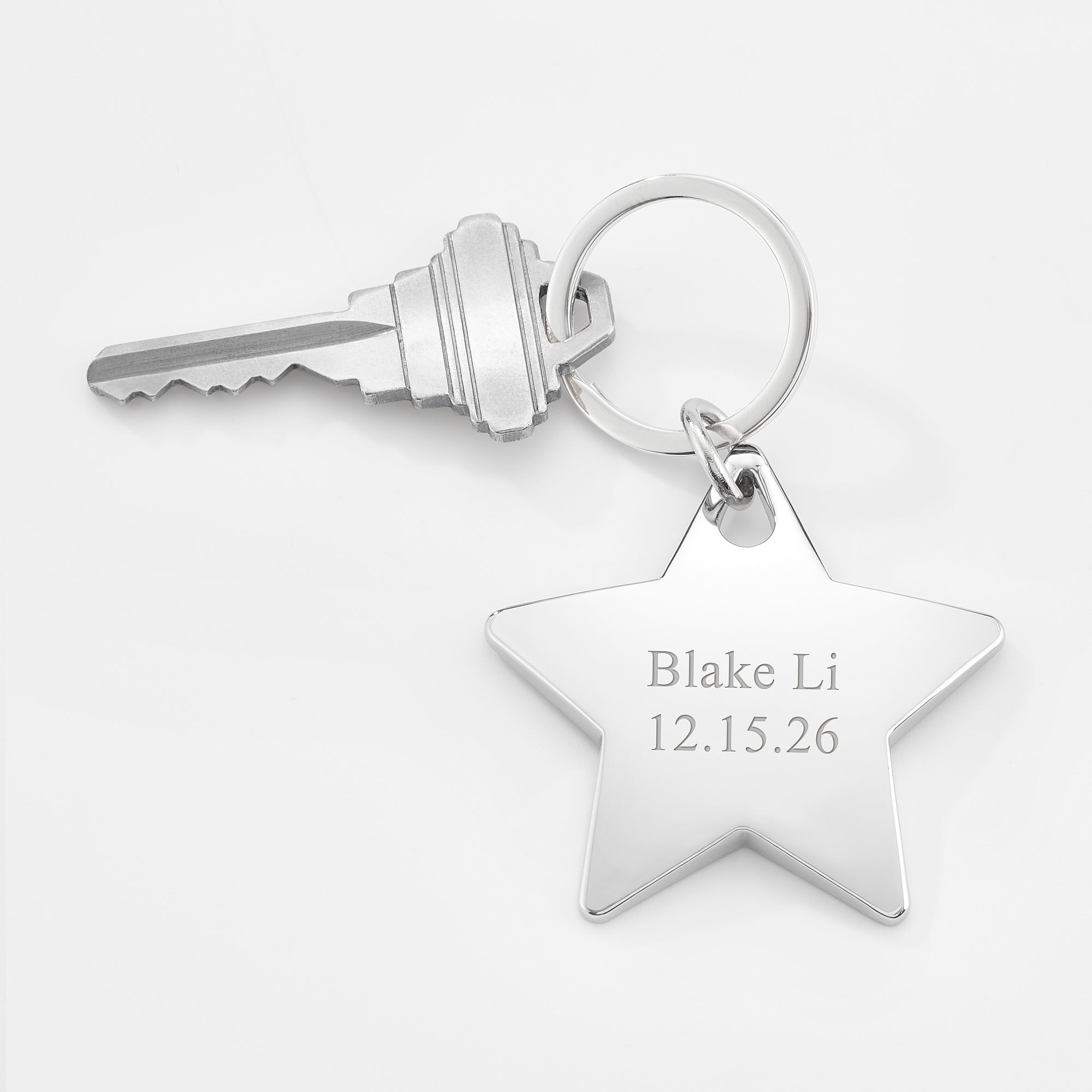 Product Information 47719 - Engraved Silver Star Keychain