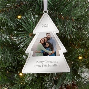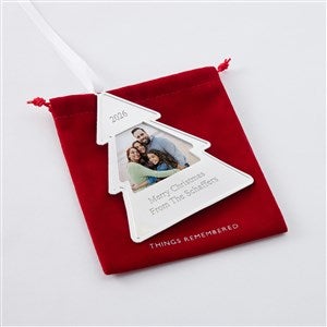 The Silver Picture Tree Picture Frame Ornament is an unique picture frame that displays a personalized photo on the tree. They'll adore this engraved gift with a message they'll love to see every holiday for years to come. This ornament makes celebrating a new baby, family, or significant moment even more meaningful when it is brought out to decorate each holiday.