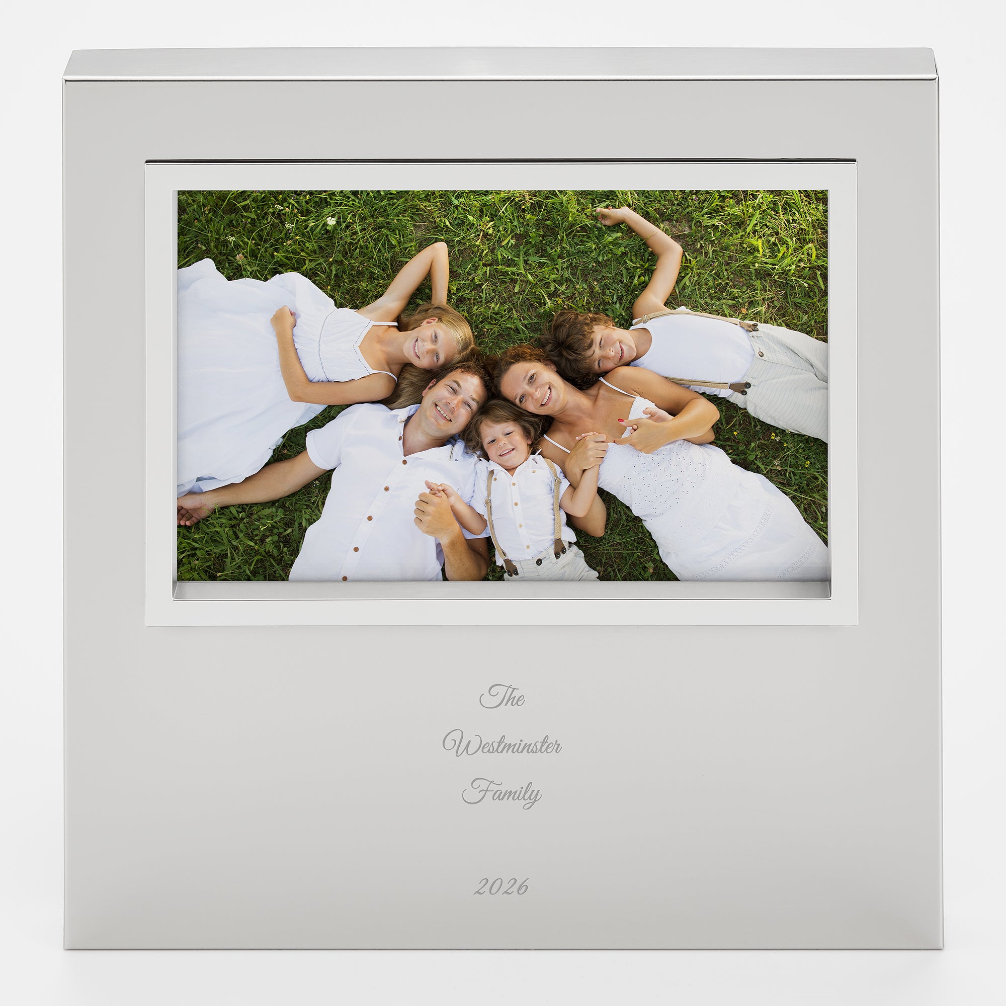 Our Uptown Picture Frames offer an open space for your personal message. This 4x6" version in silver finish is no exception! Display your wedding, family, or portrait with pride and a personal message below the photograph or to the right side if the vertical/portrait orientation is preferred! The Uptown frame is a wonderful way to give a loved one a message with a photo reminding them of the moment.