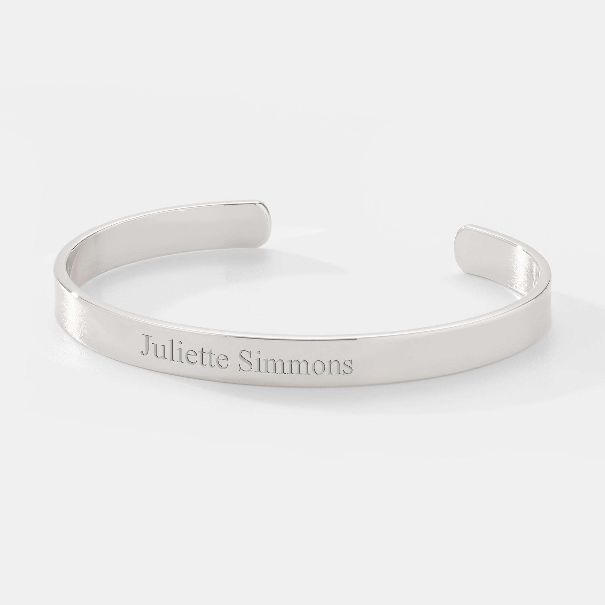 Our Slim Silver Plated Cuff Bracelet is a dainty piece that can be worn every day or for special occasions. We'll engrave their name, an important date, or phrase on it. We also offer this bracelet in gold.