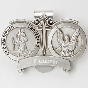 Send your loved one God's blessings and safety while they drive with our personalized St. Christopher Engraved Visor Clip. Perfect for a birthday and holidays. Also makes an ideal gift for graduates going off to college, or military servicemen.