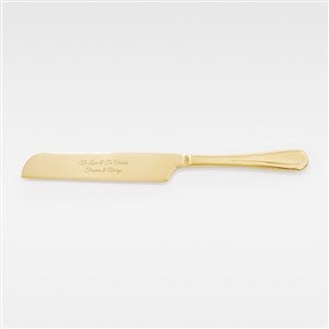 The Engraved Stainless Gold Cake Server Set will bring a refined touch to any wedding reception! This is also a well-suited gift for newly engaged couples, at bridal showers, and for anniversaries. Engrave the set with their names, wedding date, or a thoughtful message.