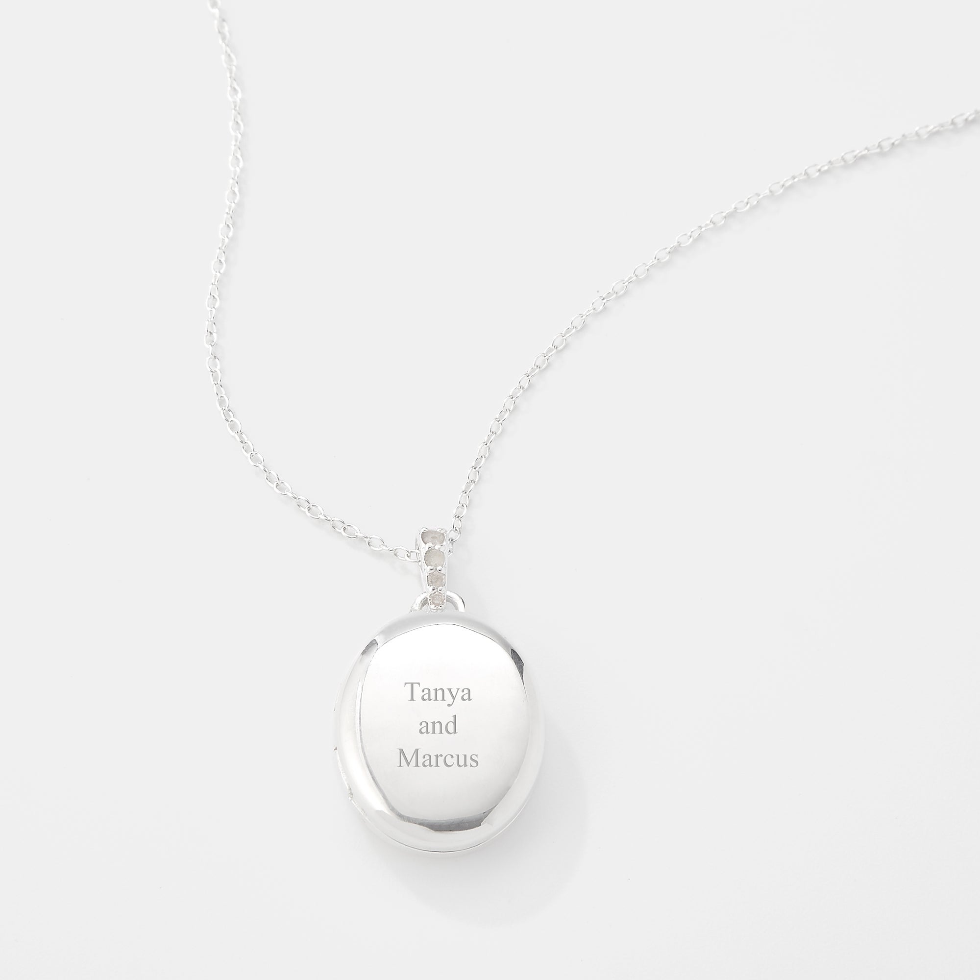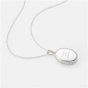Engraved Sterling Silver Oval Locket with Diamonds Necklace