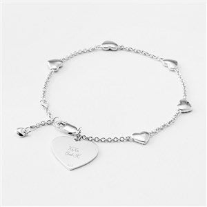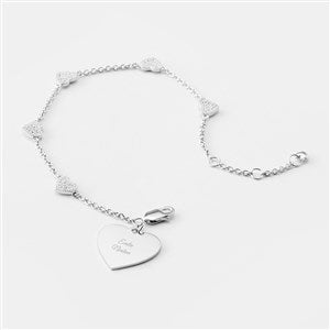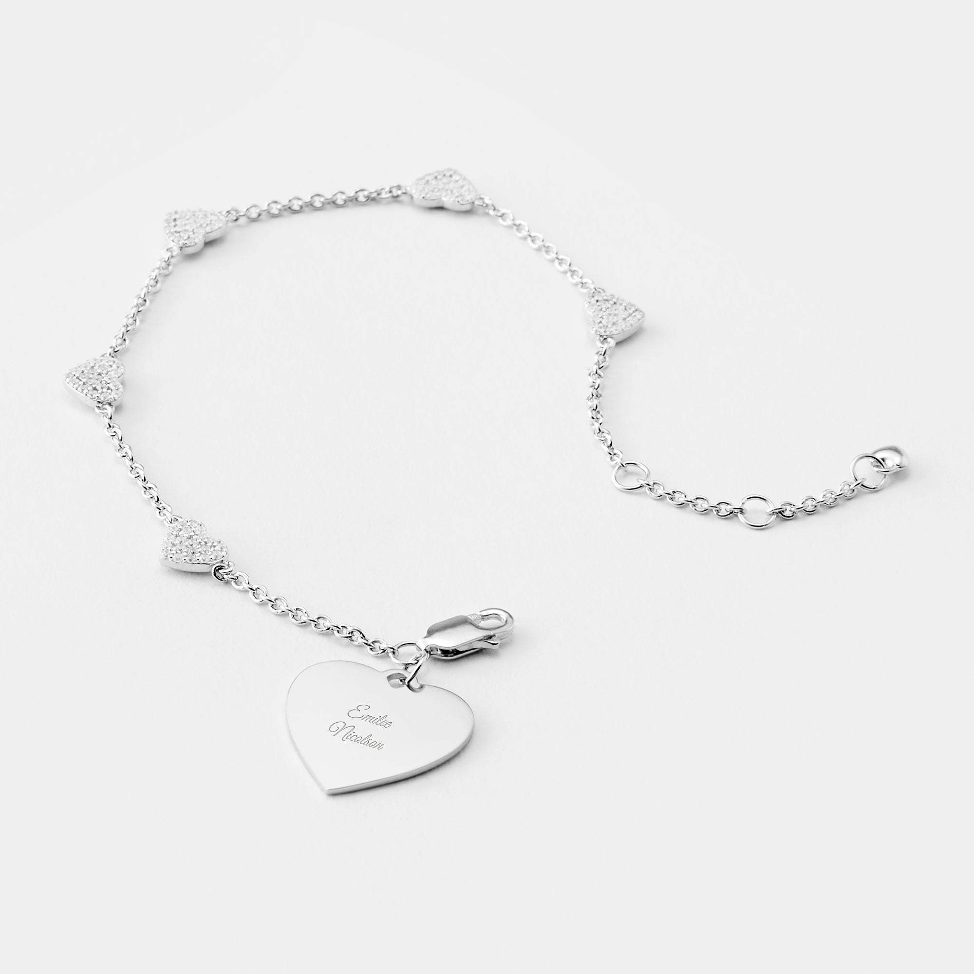 Engraved Sterling Silver Pave Heart Station Bracelet