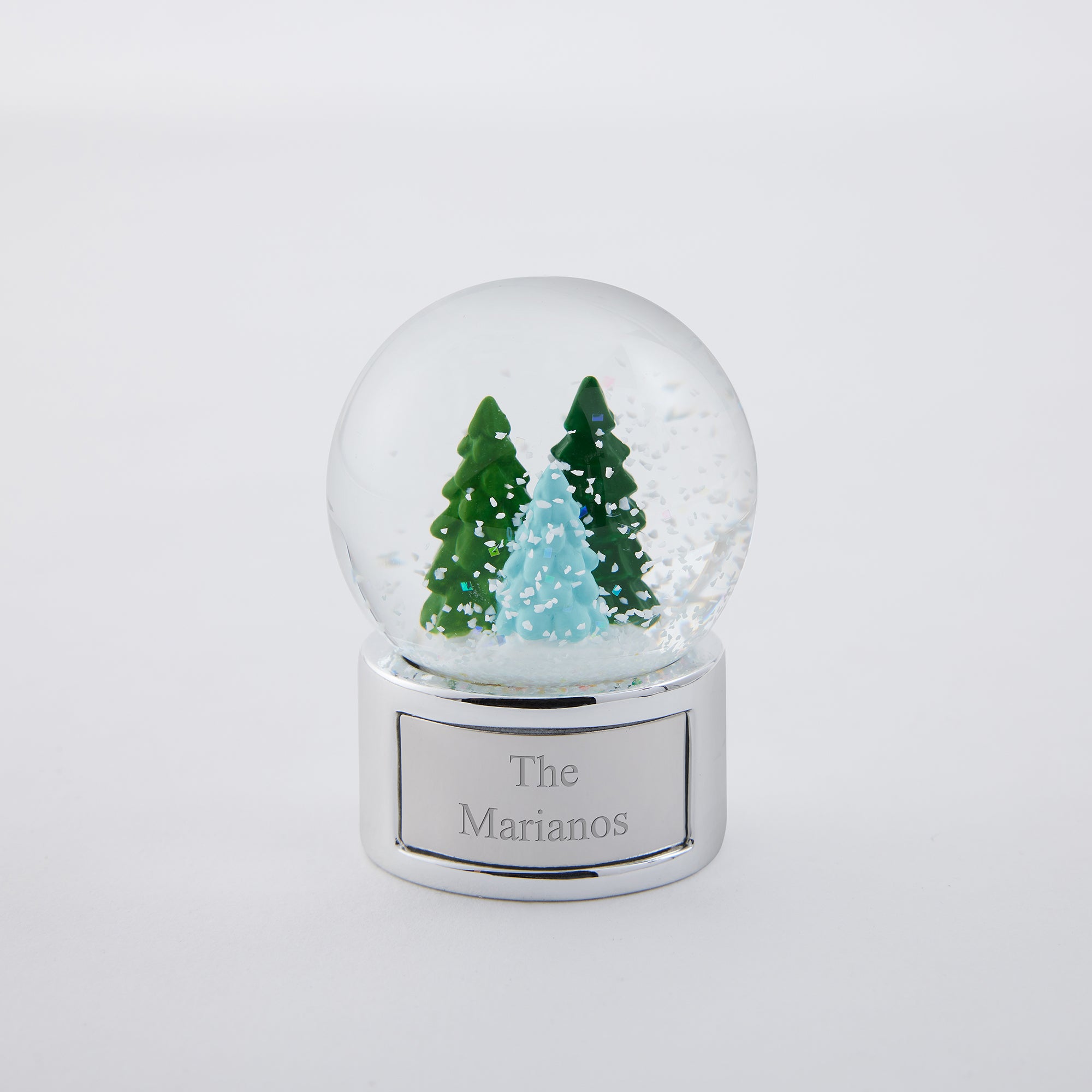 The Tree Trio Mini Snow Globe is small but mighty with holiday spirit! Engrave the base with a family name or short holiday message. Gift to family members, friends, hosts, and even the kiddos.