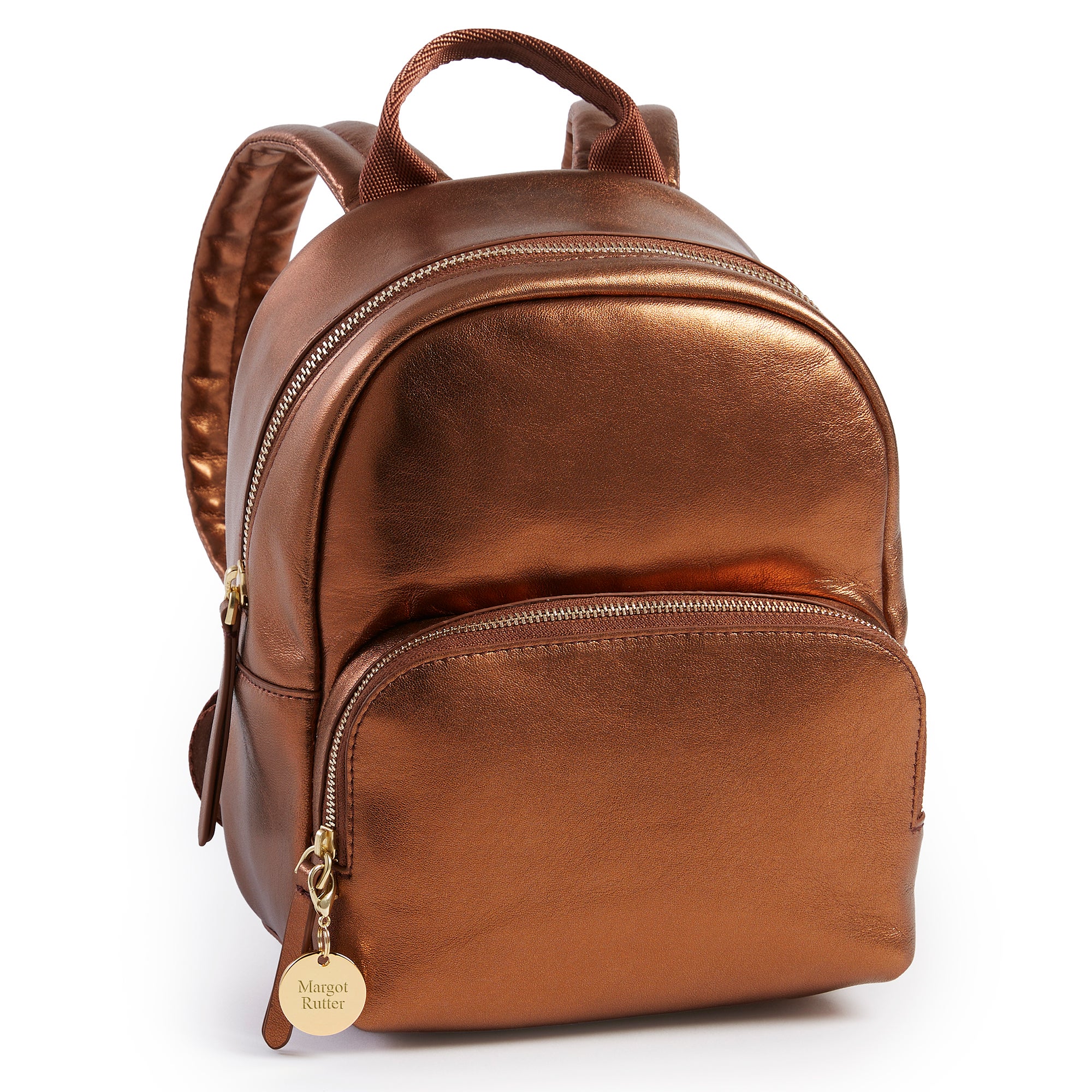 Engraved Vera Bradley Leather Mini Backpack in Bronze Metallic