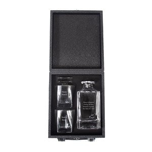 You will love using our Warren Whiskey Barware Collection whether you prefer whiskey neat, on the rocks or even an Old Fashioned cocktail.  This set comes in a beautiful vegan stingray carrying case with customized foam to protect your two whisky glasses and decanter.  Engrave the decanter with up to 6 lines of text and each glass with up to 4 lines of text. Makes the perfect gift for Father's Day, bachelor parties or birthdays!