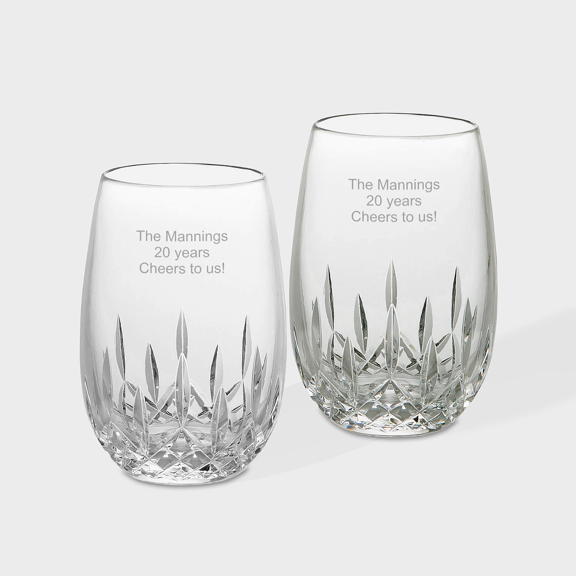 Engraved Waterford Lismore Essence Stemless White Wine Glass Pair