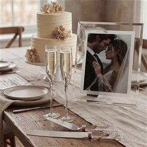 Our Athena Collection is one of our best-selling designs in Wedding, and this Athena Wedding 8x10 Picture Frame is one of the standout pieces! Couples love to display a photo from their big day and you can add their names, wedding date, or a quote and we'll engrave it underneath the photo opening.