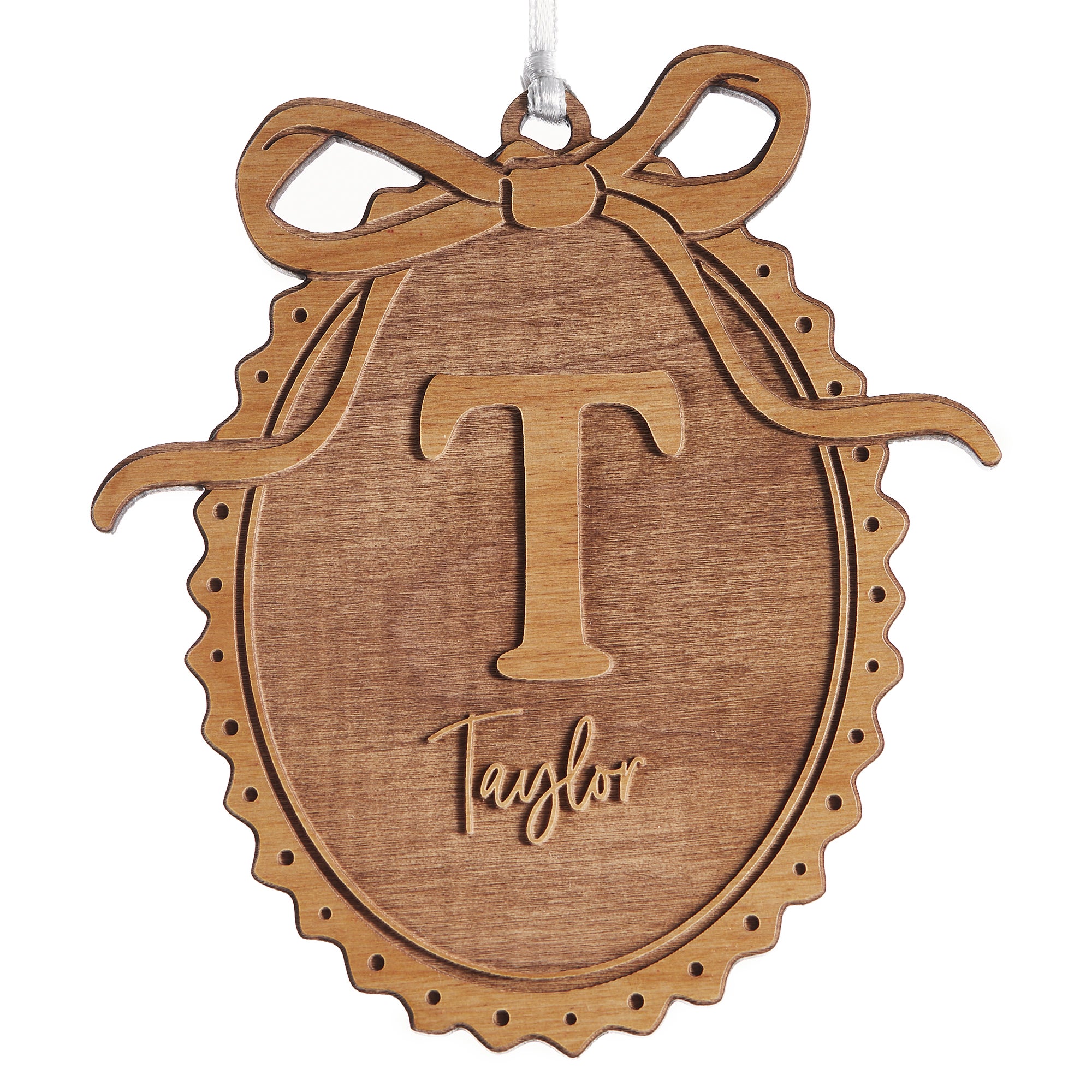 Engraved Wood Bow Initial Ornament by Jessie James Decker