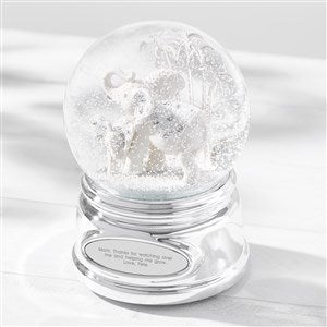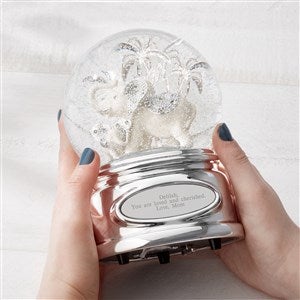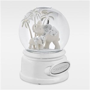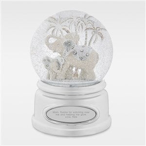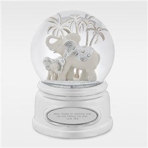 Our Elephant Mom and Baby Snow Globe features two elephants with jeweled detail enjoying a cuddle. This globe is a favorite gift for Moms to celebrate their love and devotion to their children. We'll engrave their name or note on the base to make it even more personal.