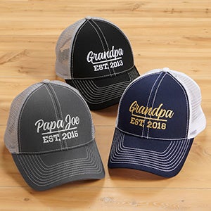 Every man needs an accessory piece to his outfit. Let him go out in style with our Established Grandpa Embroidered Trucker Hat.