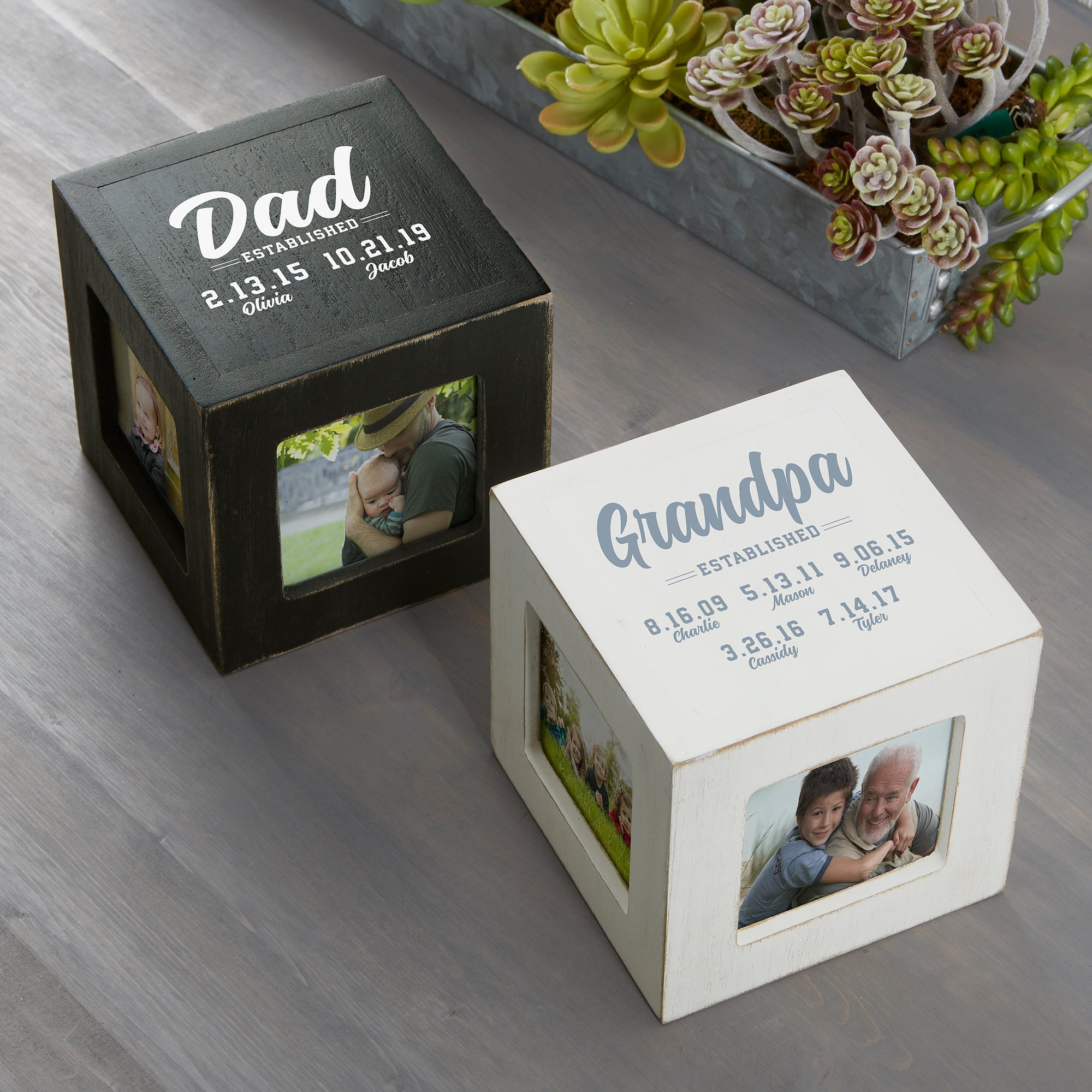 Create a lasting keepsake for him to enjoy through the years with the Established Personalized Photo Cubes. The photos on the 4 sided cube can be changed out to display favorite photos as their loved ones grow up.