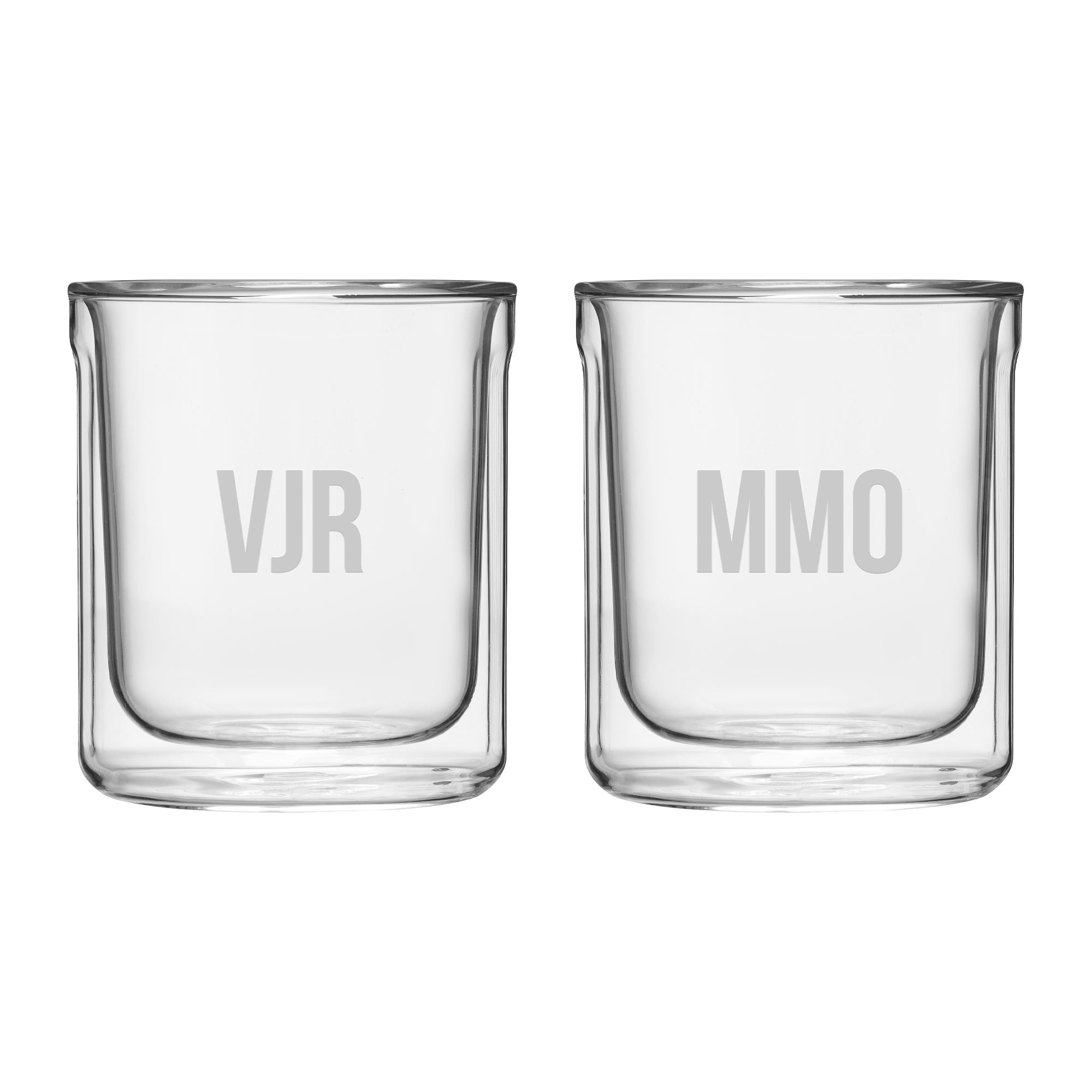 Etched Corkcicle Monogram Double Walled Rocks Glass Set