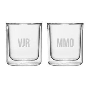 Your party guests will love using our Etched Corkcicle Doubled Walled Rocks Glass Set at your next gathering. It is crafted with lightweight double walled glass and features flat-grip sides for ease of use. Personalize with up to 3 initials in your choice of fonts. This set is great to gift for birthdays, engagements, weddings, housewarmings, and more!