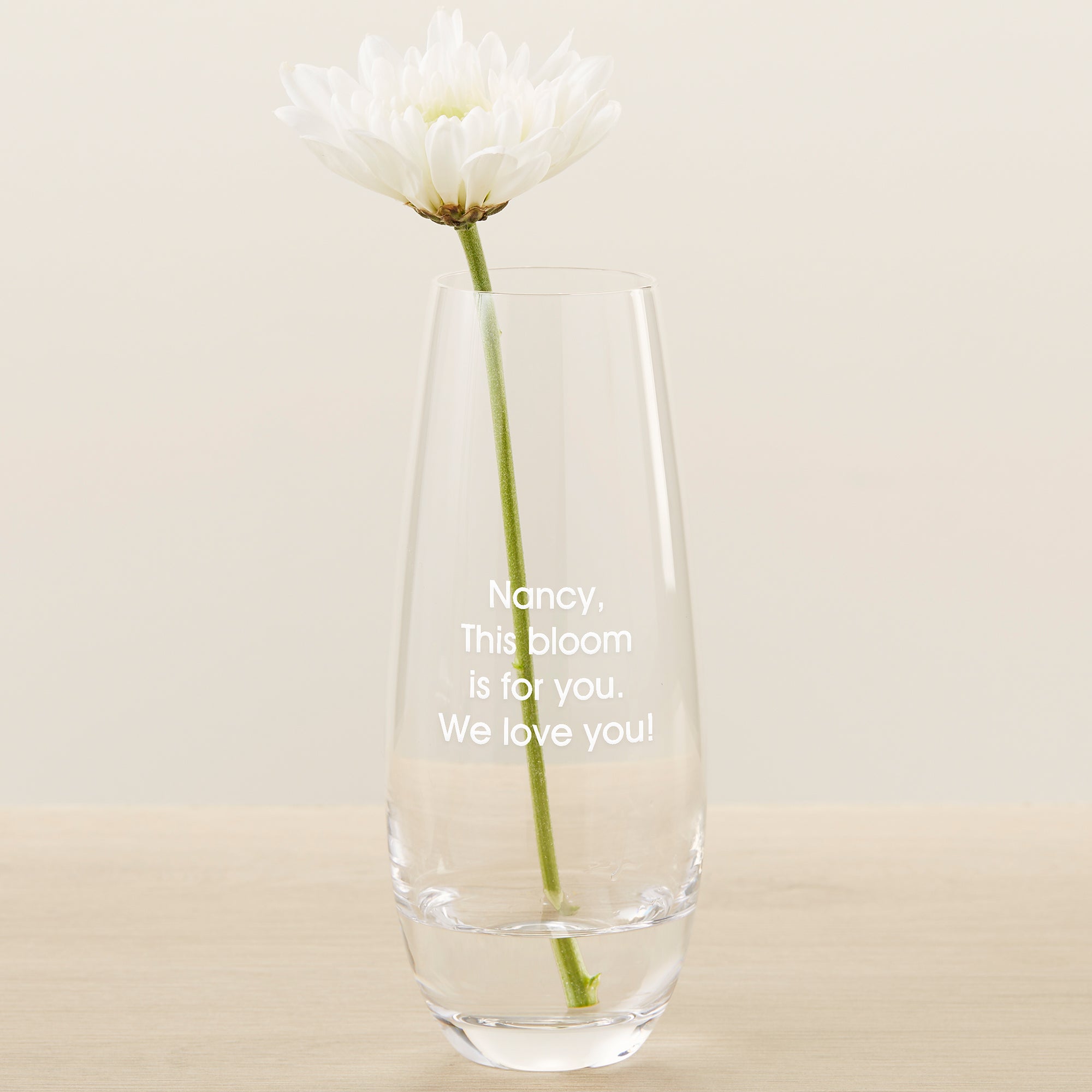 Send them your warmest wishes with the Etched Glass Bud Vase. Fill it with a few freshly pick flowers or grab them on the way!