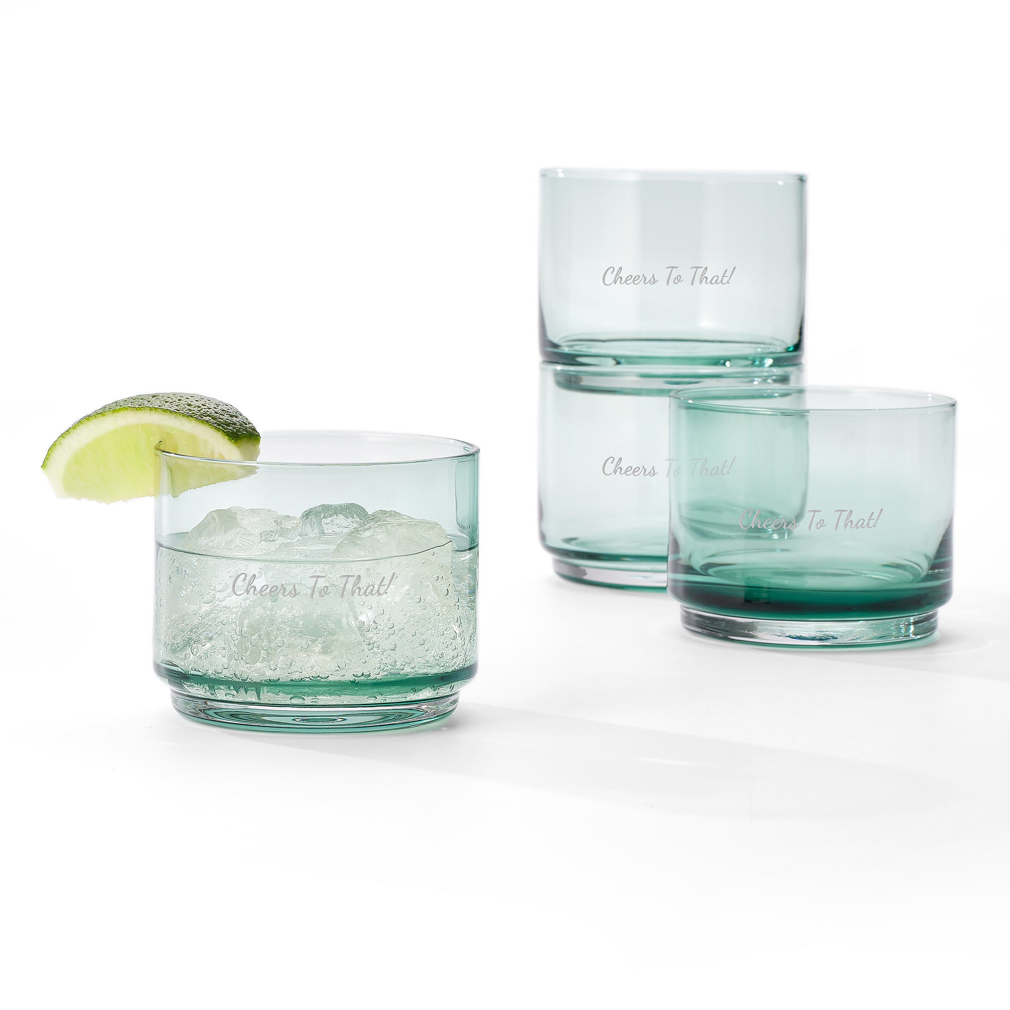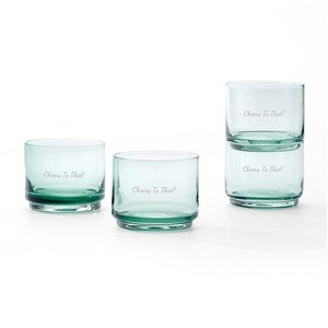 From brand Lenox, this Tuscany Short Stacking Glass Set in Green is even better with your engraved message! Gift them this set with the front of each glass etched with their name or a short message. They'll love the personalized addition to their kitchen or bar. This set is also offered in clear and smoke.