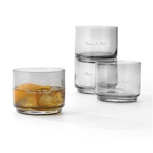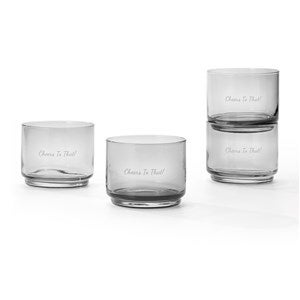 From brand Lenox, this Tuscany Short Stacking Glass Set in Smoke is even better with your engraved message! Gift them this set with the front of each glass etched with their name or a short message. They'll love the personalized addition to their kitchen or bar. This set is also offered in clear and green.