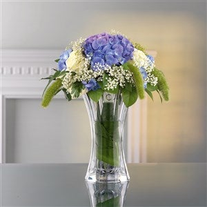This Nachtmann Saphir Vase will make a statement in any indoor space. Gift for weddings, housewarmings, recognition, and more. Etch the front with their initial for a personal touch.