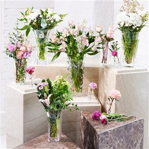 "This vase creates the perfect symbiosis with a beautiful bouquet of flowers. Made from high-quality crystal glass, our vase collection offers affordable luxury for your home.