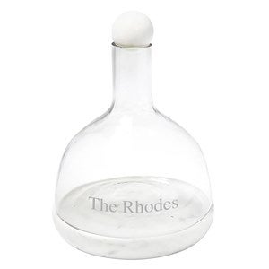 The White Marble & Glass Wine Carafe will look beautiful and make a statement on any bar cart, table, or counterspace. Simple in design, the white marble base and stopper adds a special touch to the design. Chill the marble base in the freezer ahead of serving drinks to help keep the beverages cold. The front can be engraved with a name, date, or a short personal message.