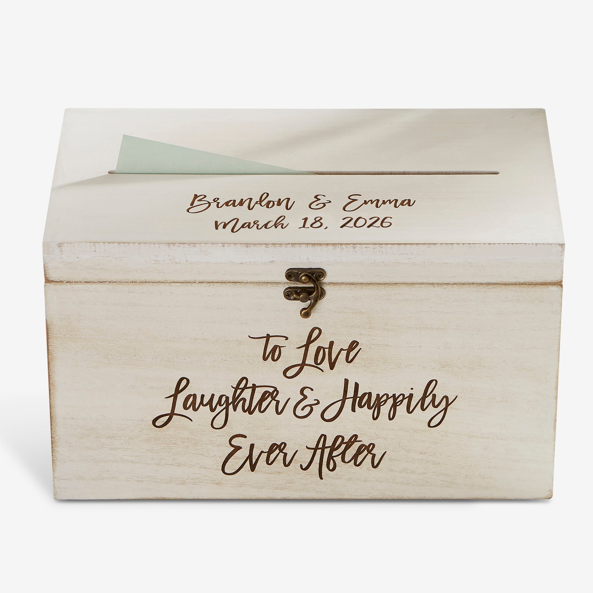 - Personalize the top of the box with any 2 names and wedding date