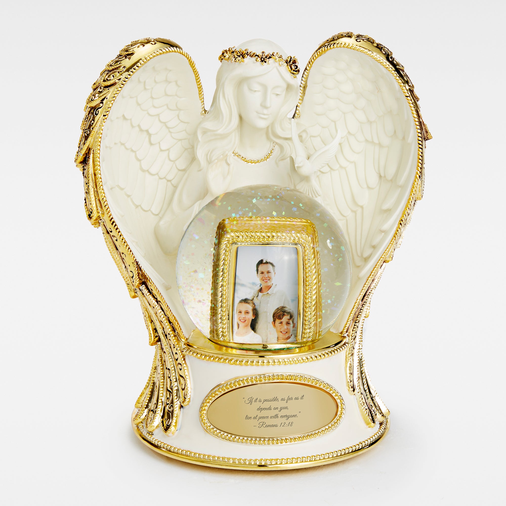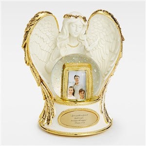 Our Engraved Guardian Angel Snow Globe features a large guardian angel with a photo holder in the globe to display a favorite family picture. Underneath we'll engrave their names or a personal note on the base.
