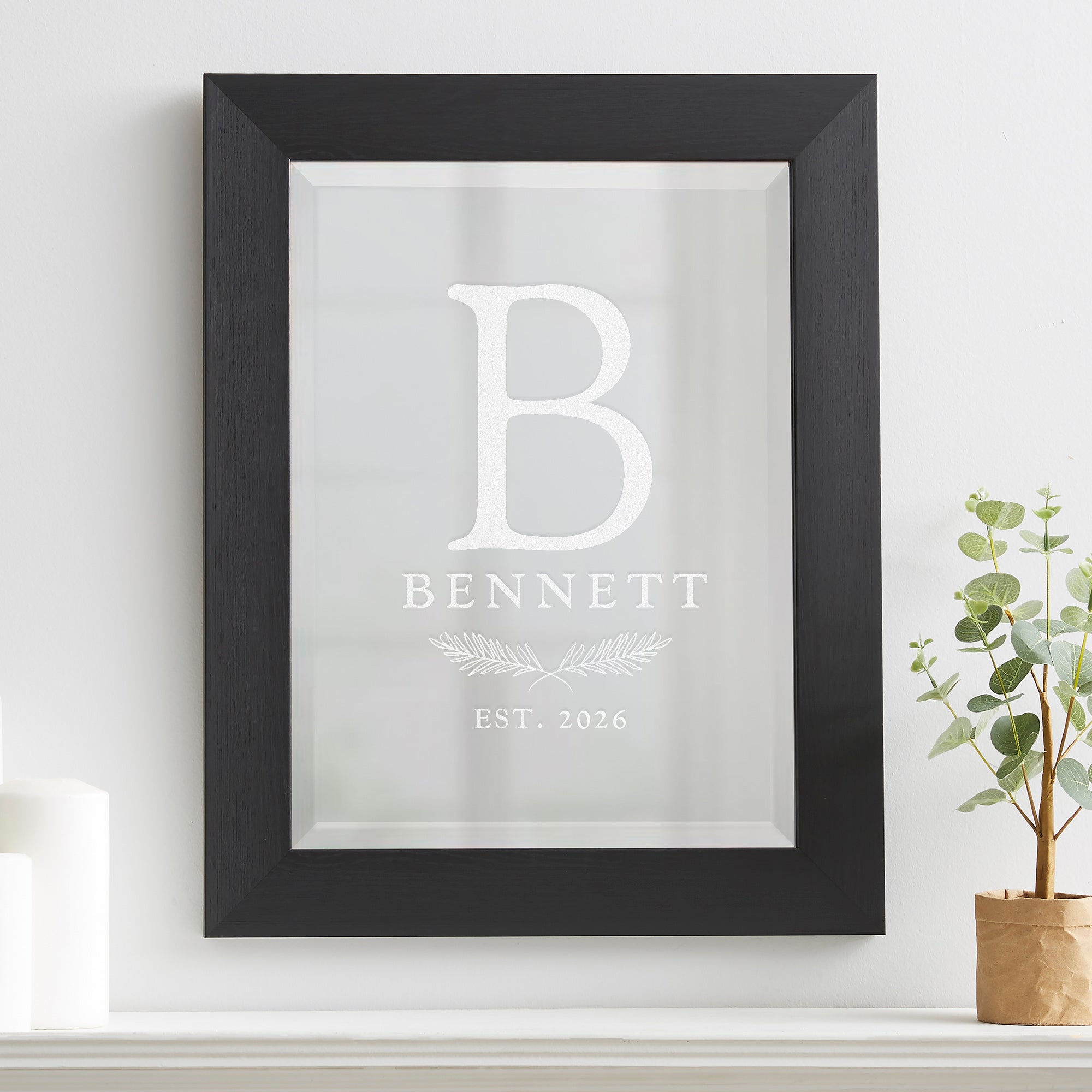 The Family Laurel Engraved Wall Mirror makes a classic piece of wall decor to display anywhere in your home. The 16x20 framed mirror can be used as an accent above a mantel, in the entryway or a bedroom.