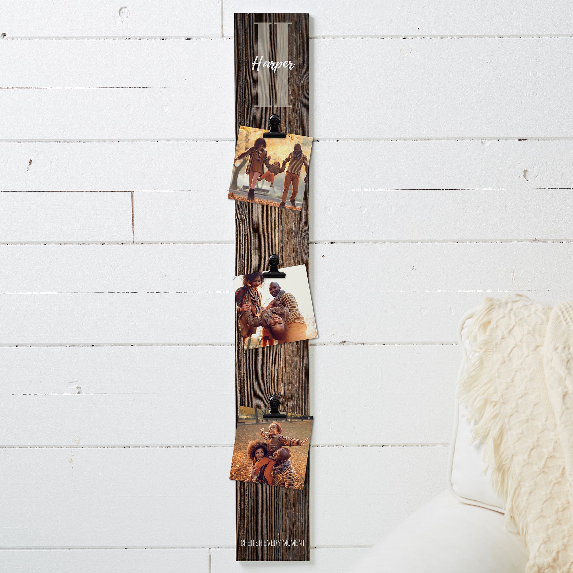 Show off their smiling faces with the Farmhouse Initial Personalized Photo Clip Wood Sign. The slim design makes a great accent piece for any room of your home.